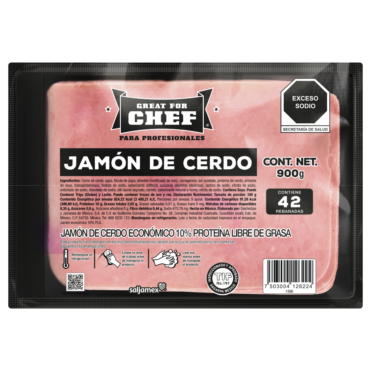 Si lo que buscas es un producto que se adapte a todas tus recetas, nuestro jamón de cerdo es para ti. Su textura firme y su rico sabor cárnico lo convierten en el ingrediente perfecto para darle ese toque exquisito a tus preparaciones. El Jamón de Cerdo GFC® es la opción ideal para quienes buscan calidad en el sabor y una cantidad que realmente rinda.